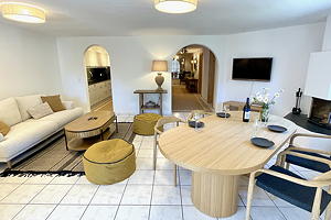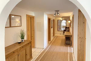 Eingang mit Garderobe, Wohn-/Esszimmer mit Cheminée, TV, WLAN-Internet, moderne, gut ausgestattete Küche mit Geschirrspüler, 2 Schlafzimmer mit je 1 Doppelbett, 1 Schlafzimmer mit 1 Bett, Bad/WC mit Waschmaschine und Tumbler, Dusche/WC, Zusatzmatratze für eine 6. Person auf Vorbestellung möglich.